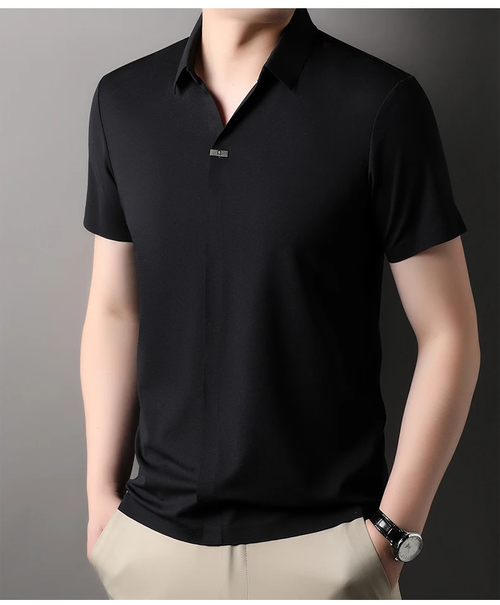 2026Black men's new T-shirt, lightweight, breathable, and suitable for business casual wear.