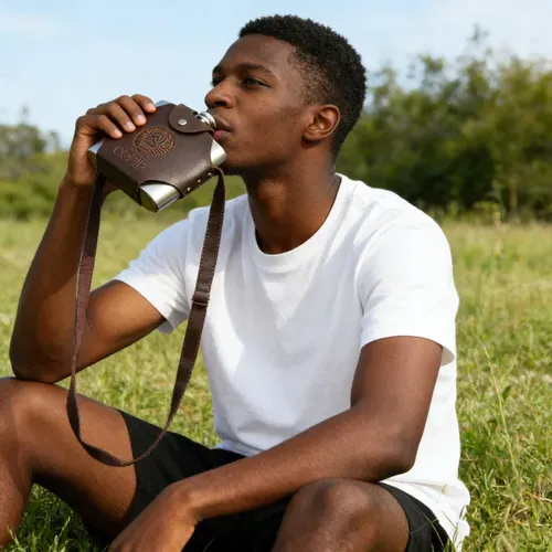 Leather Flask with Strap